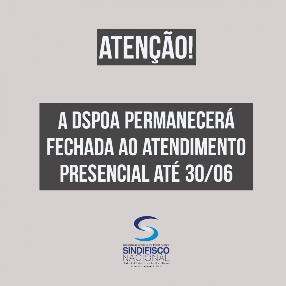 20 Jul 2020Em função da pandemia do CORONAVIRUS, a DSPOA permanecerá fechada ao atendimento presencial até sexta-feira, 31 de julho próximo, pelo menos. Para ... -