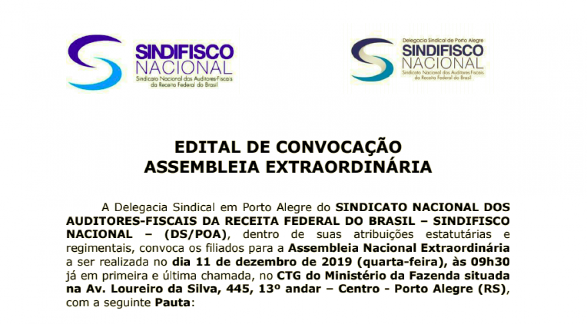 12 Fev 2020Realizada nesta quarta-feira, 13 de fevereiro, a Assembleia Nacional Extraordinária reuniu Auditores Fiscais de Porto Alegre no CTG do edifício-sede do Ministério ... -
